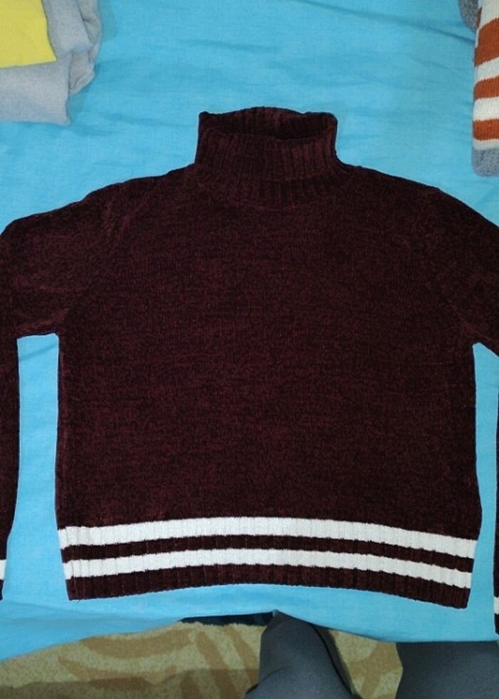 M-L beden kadife boğazlı kazak eni 48 cm boyu 52 cm