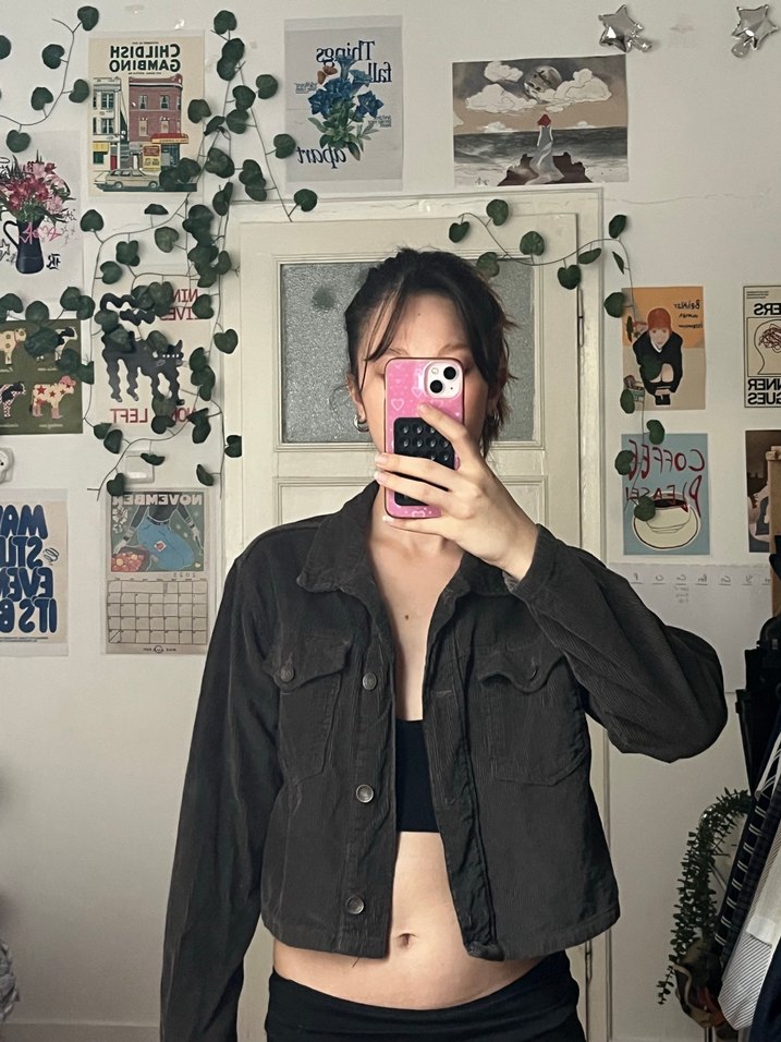 Kahverengi kadife crop ceket