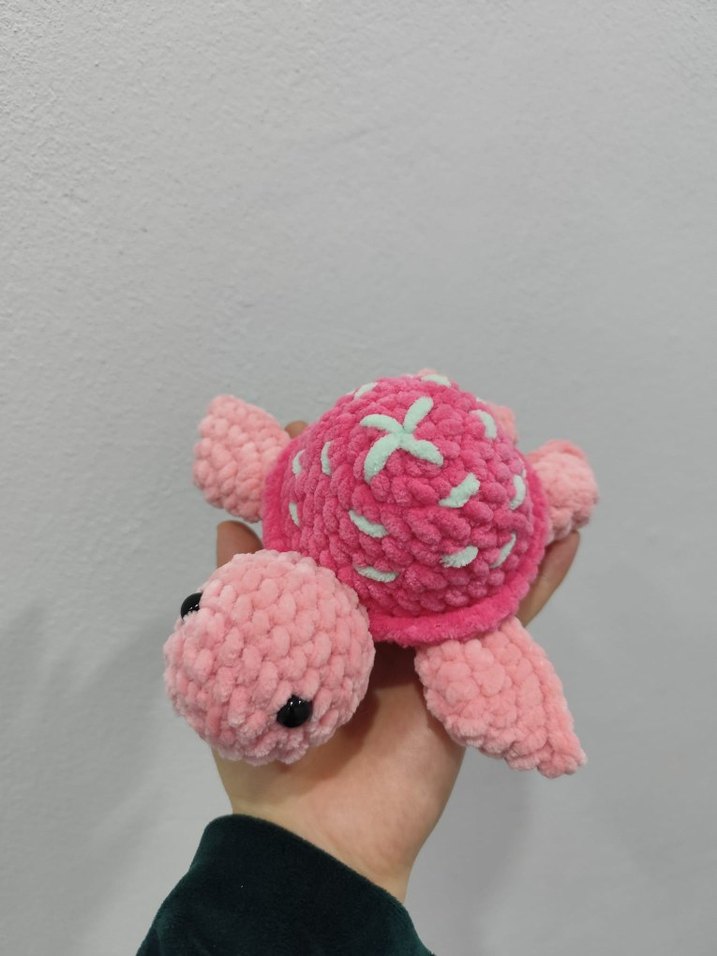 Renkli pembe peluş kaplumbağa, yumuşak dokusu ve detaylı işçiliği ile dikkat çeker. istenilen renk model yapılır orta boydur