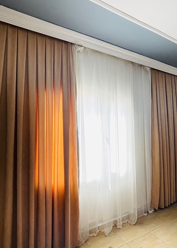 Dort adet iki pencere için uyumludur genişlik pileli 1cm normal pilesiz 2.80cm uzunluk sıtandart boy 3 cm az kulanıldı pencereme uymadığı için satıyorum