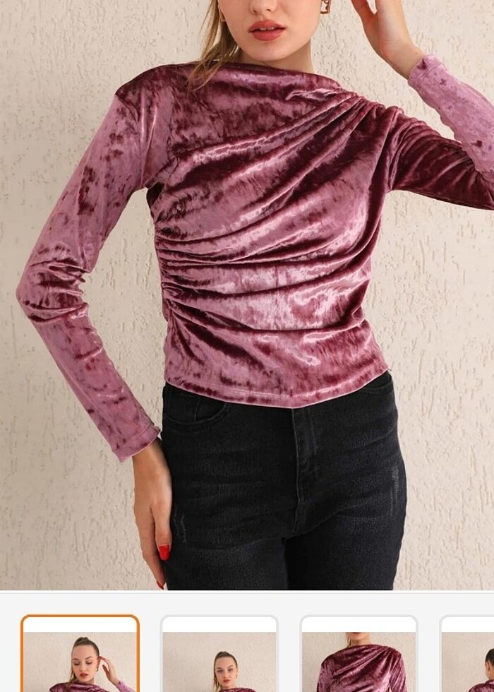 Lila rengi parlak kadife dir. S-M beden uyumlu. Bir kez giyilmiştir.