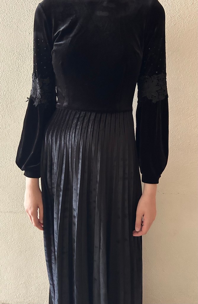 Pilise etekli kadife siyah elbise. Elbise sayılı giyildi. Kilo aldığım için artık giyemiyorum.