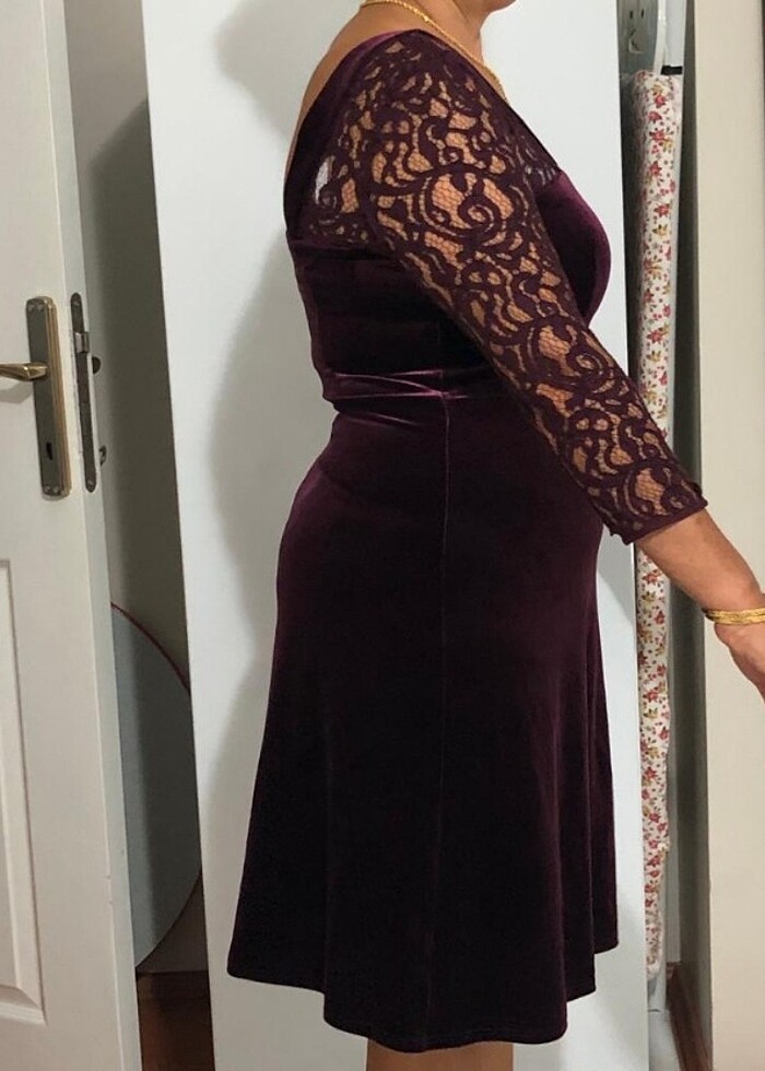 Kadife elbise çok esnek ve rahat bir kere giydim