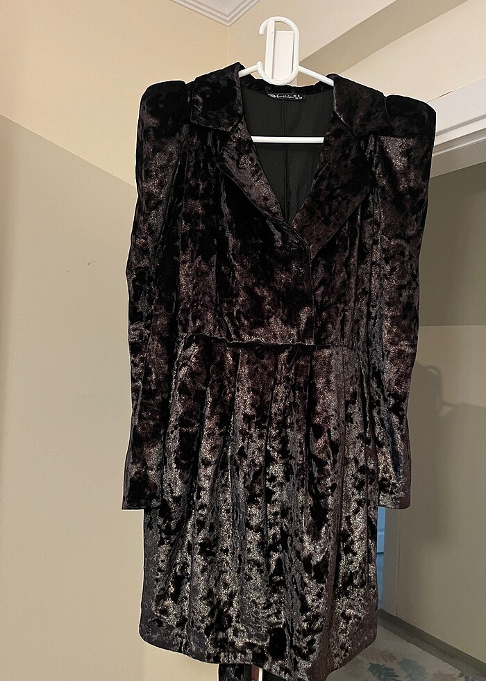 Kadife gold yansımalı omuzları vatkalı şık elbise