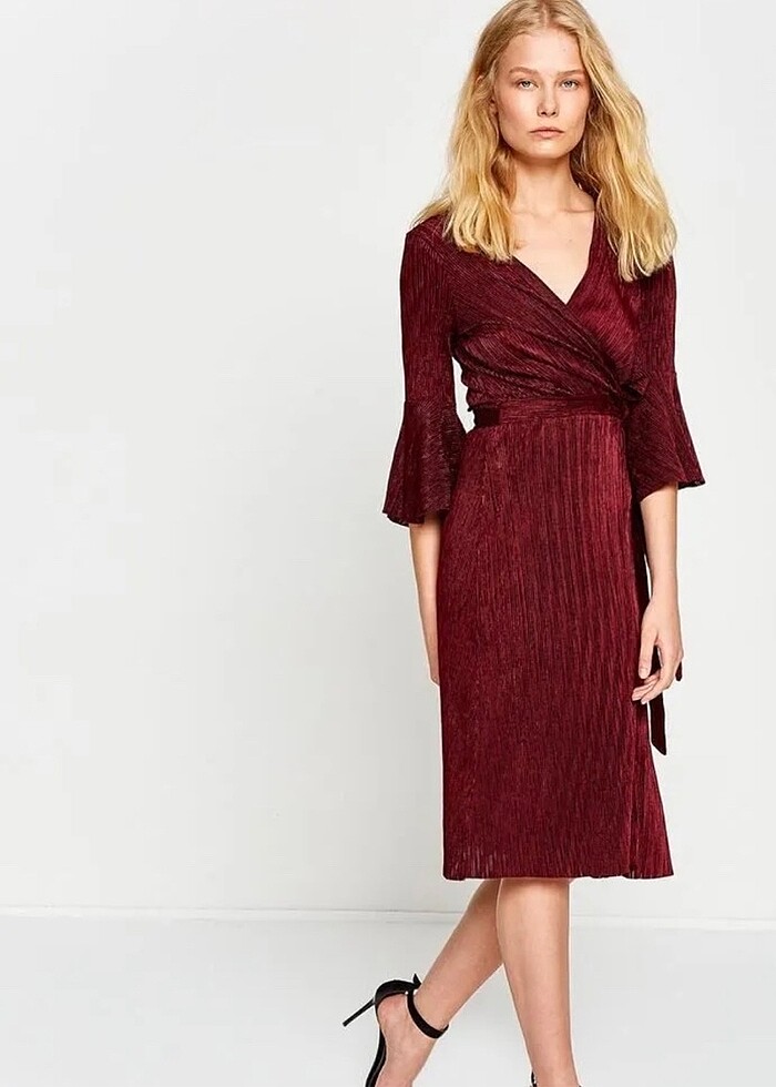 Astarsız bedene oturan kruvaze elbise. Kumaşı ve rengi çok güzel. Bir kere özel bir günde giydim.