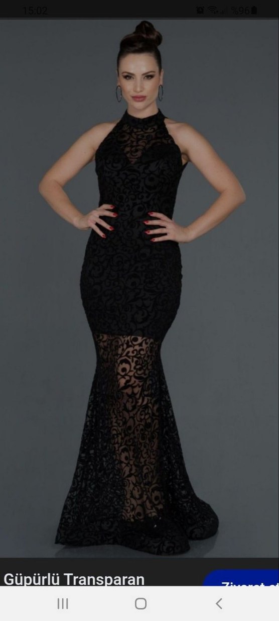 siyah dantel işlemeli, vücuda oturan uzun abiye elbise. Gotik yılan desenli ve romantik akşamlar için uygun. 2 kere giyildi boyu 160 beli 34 göğüs 38 cm