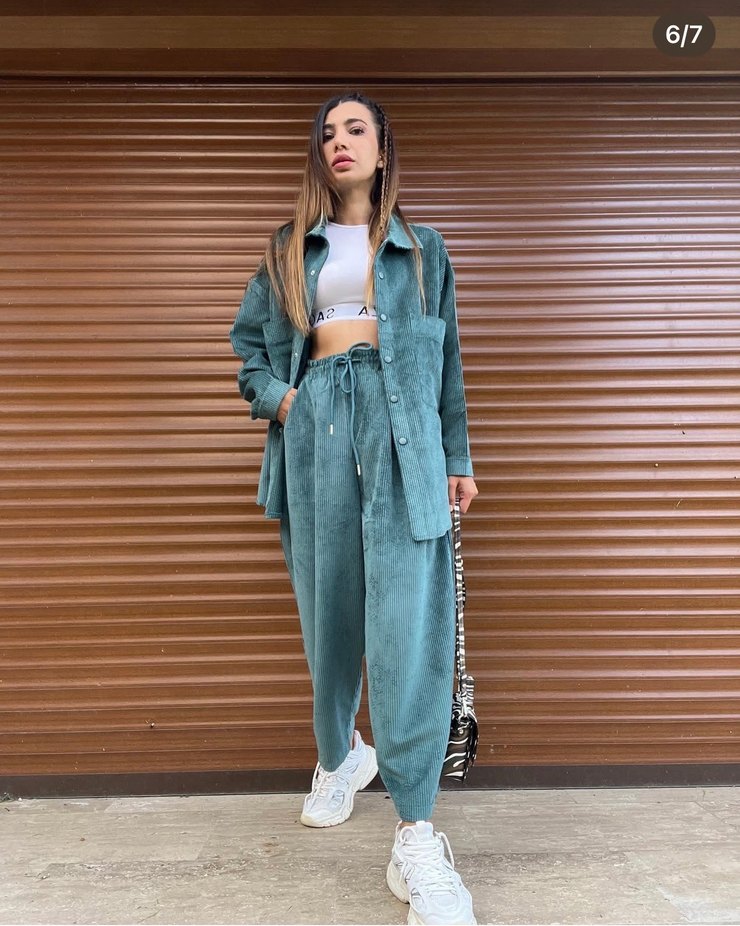 Mavi kadife yumuşak ve ribanalı kumaşla sade bir tasarıma sahiptir. M beden tarz bir takım marka temsilidir.