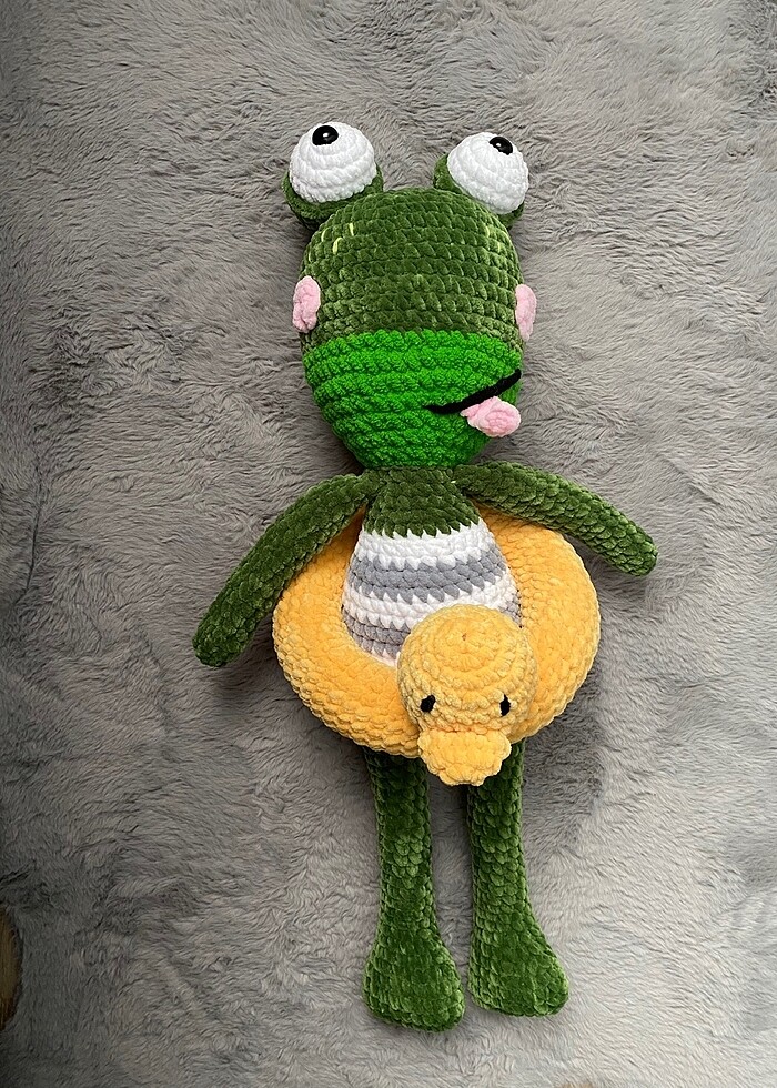 Kadife ipten yapılmıştır. Boyu yaklaşık 60 cmdir. Ördekli can simidiyle beraber.