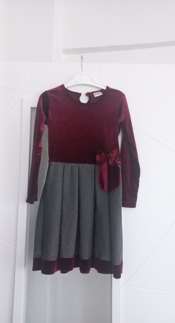 kadife bordo renk alti parlak kız cocuk elbisesi