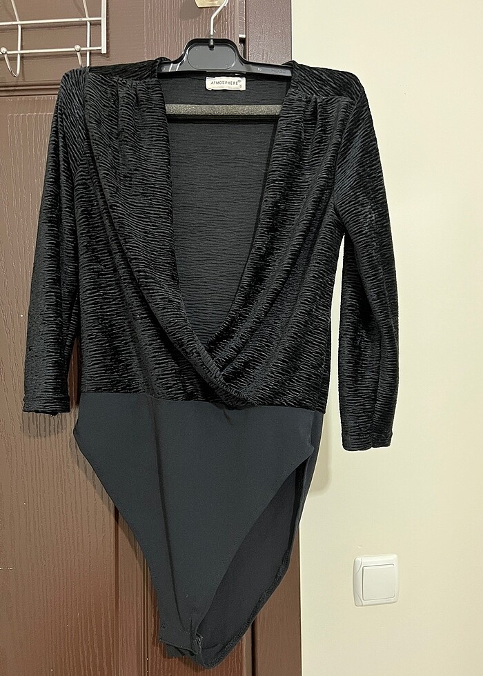 Kadife kruvaze yaka yarım kol çıtçıtlı zıbın body