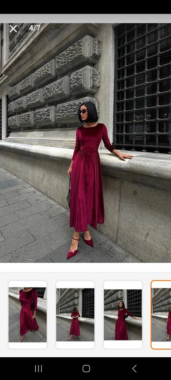 Bordo renkli, uzun kollu, bol kesim ve drapeli kadife elbise. ✨ Likrali kumaştır. Hiç giyilmedi