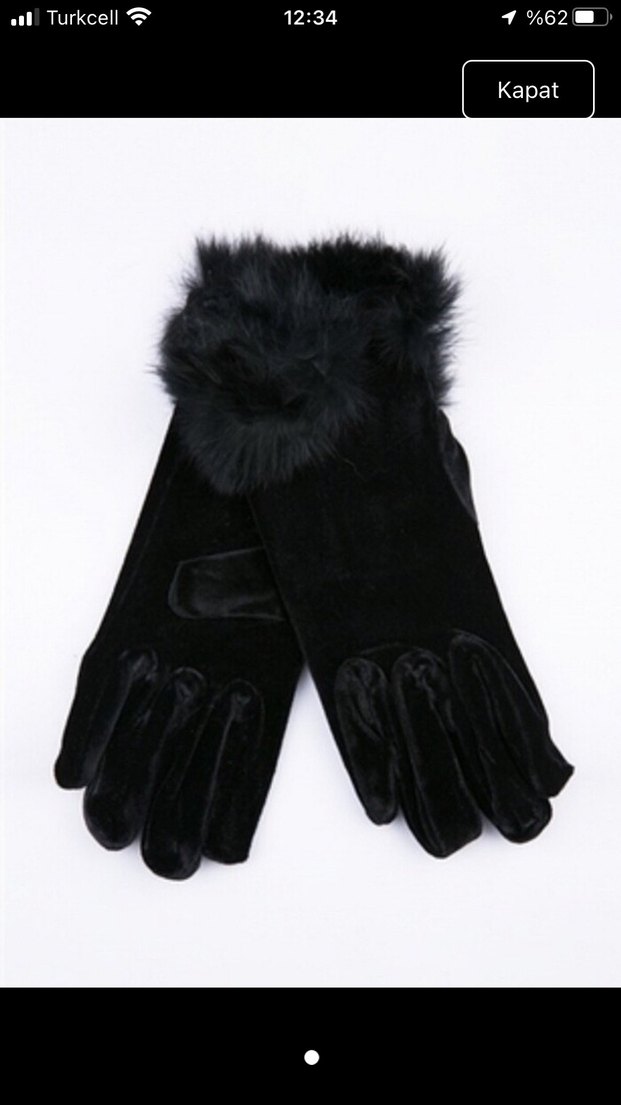 kadife Kürk Detaylı Siyah Kadın Eldiven