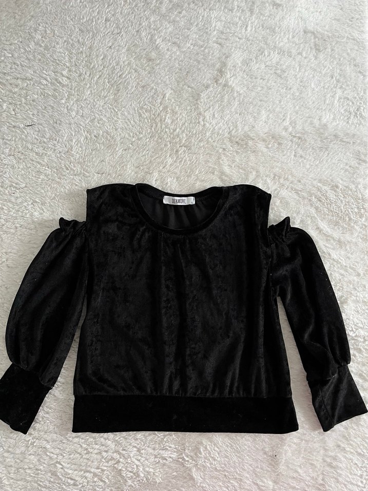 Kadife omzu açık bluz