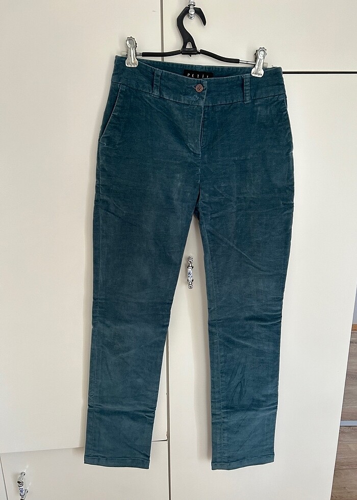 Bel ölçüsü 34 cm boyu 100 cmdir.Kadifemsi yumuşak kumaşı vardır.Ön tarafındaki kusuru hariç bir kusuru yoktur.Pantolon 38 bedendi ancak tadilatla şuanki bel ölçüsü yaptırıldı.İyi günlerde kullanılsın