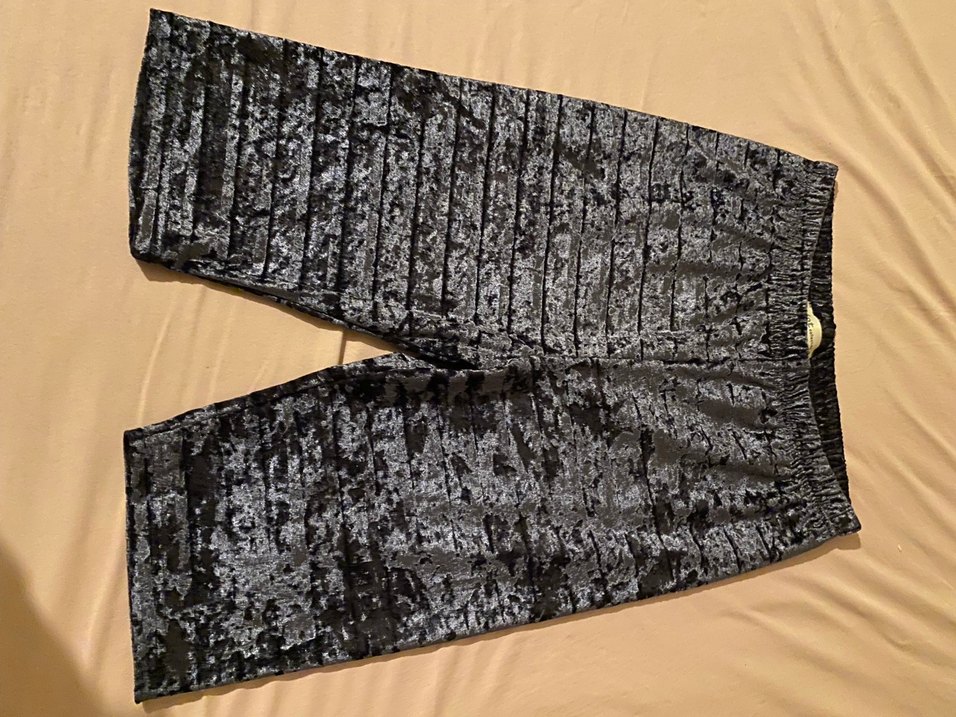 Parıl parıl eden bir kumaşı var hiç giymedim. Lacivert mor arası bir renk
