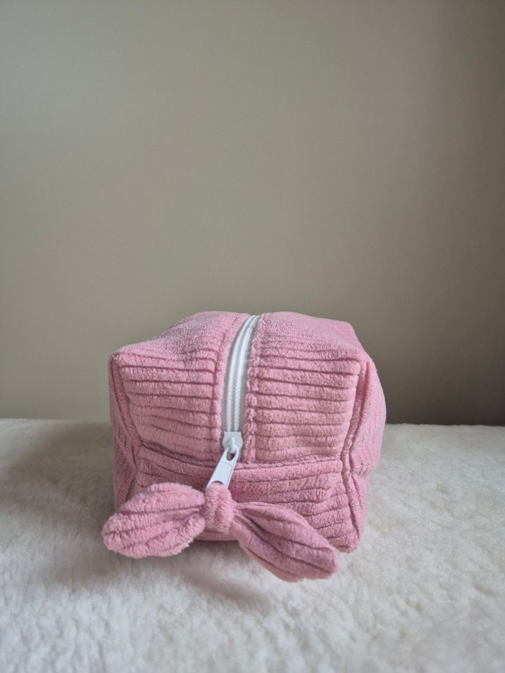 kadife kumaştan içi elyaflı fermuarlı makyaj çantası. kendi diktiğim bir üründür hiç kullanılmamıştır