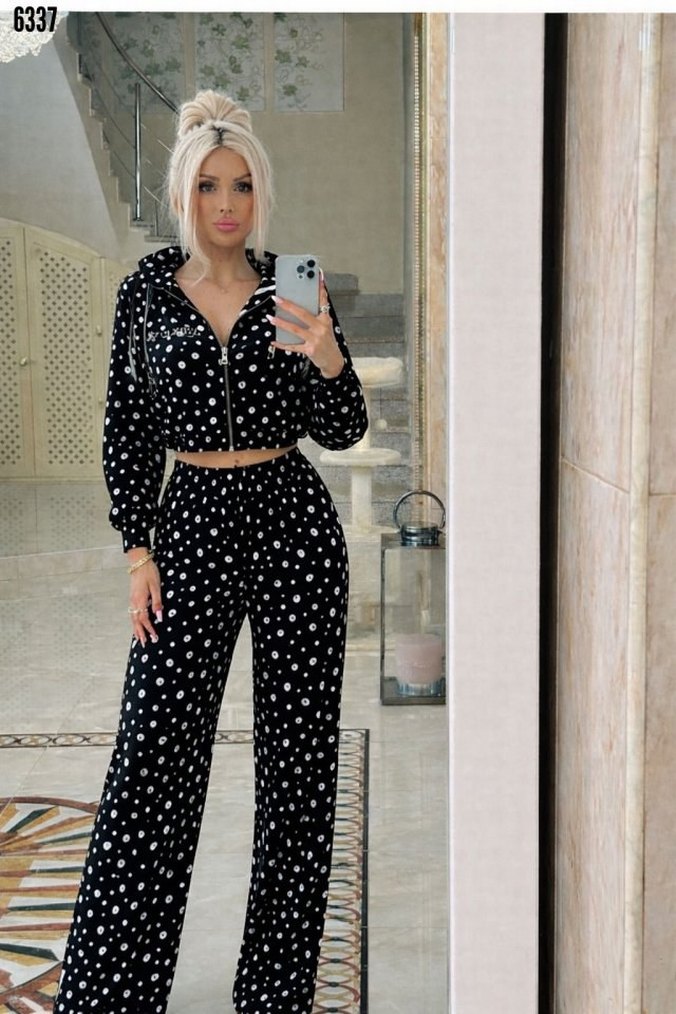 Kadife Puantiyeli Siyah Kadın Eşofman Takımı