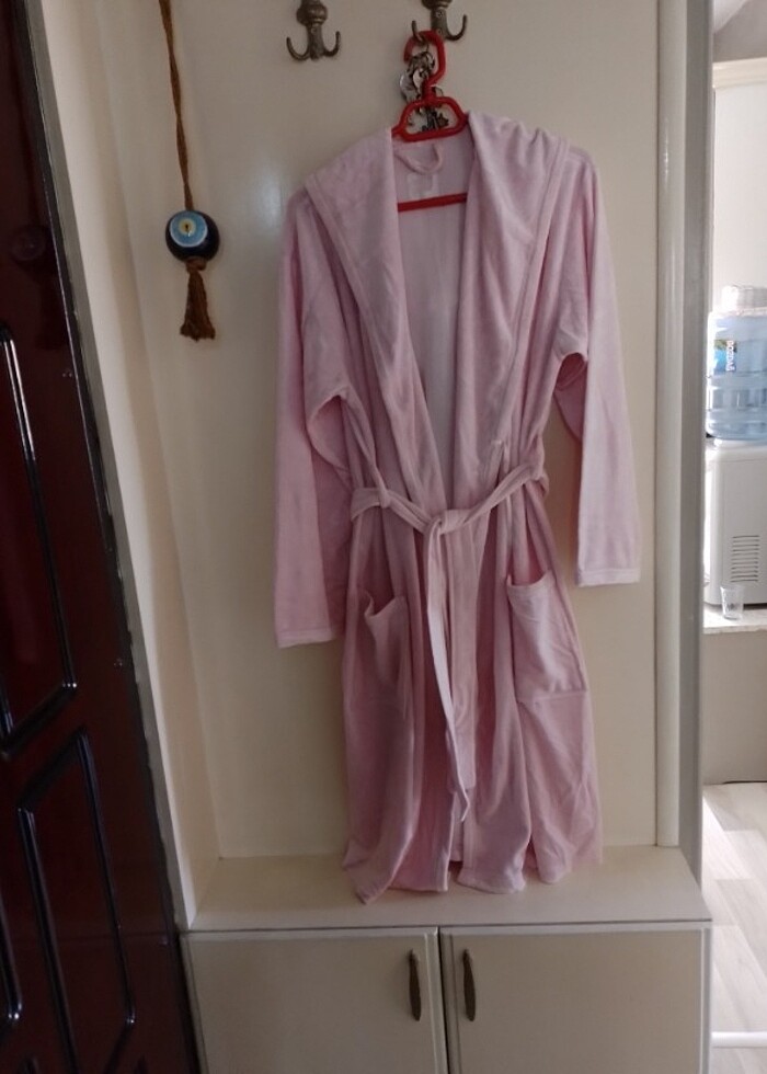 Kadife sabahlik kapsonlu sıfır urundur yumuşak bir dokusu vardir m beden gorunuyor fakat L bedene de rahat olur