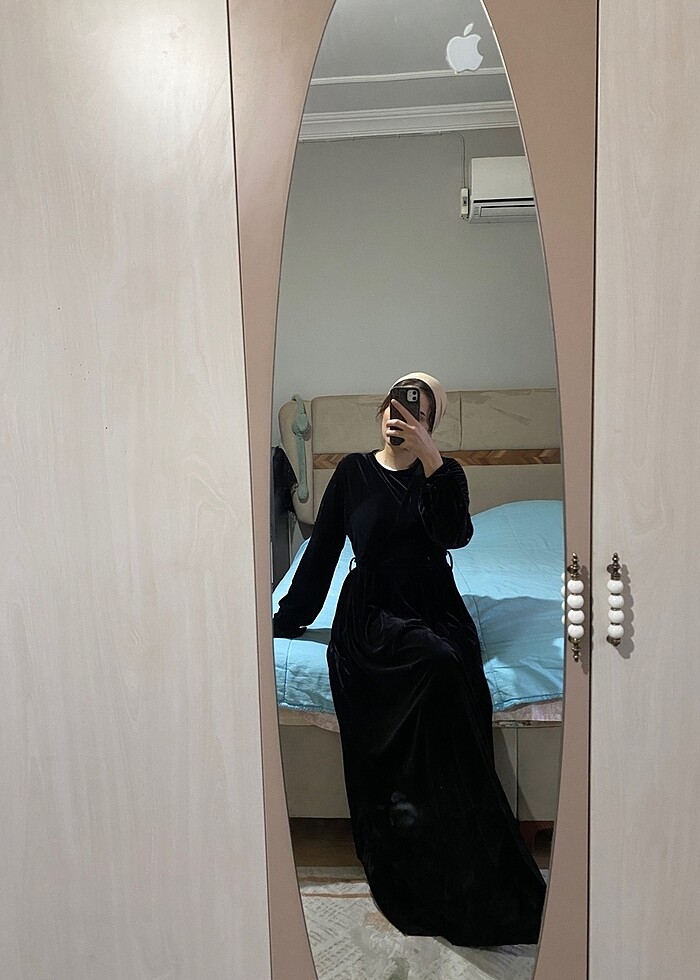 Önden çapraz detyalı kemeri vardı kayıp oldu kadife kumaş