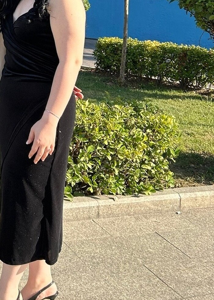Kadife simli askılı elbise