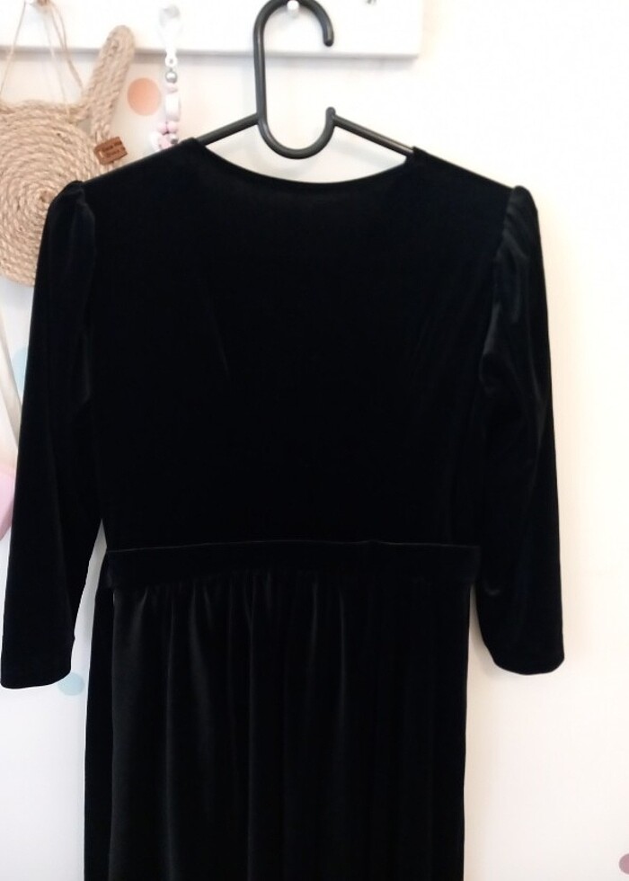 Kadife siyah kendinden kuşaklı v yaka midi boy 65 70 kilo arası giyim için uygundur beli lastikli