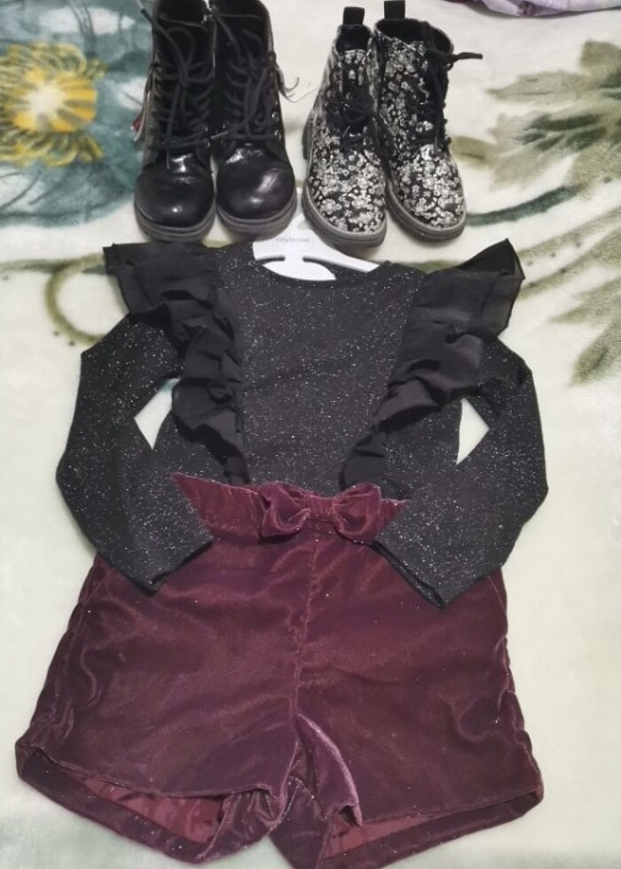 kadife şort hm simli bluz zara 5-6 kız çocuk kombin ve botlar