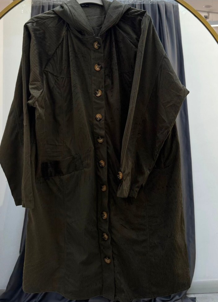 1 beden kadife kapüşonlu trençkot gögüs 57 cm uzunluk ğ7 cm