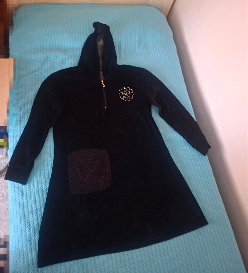 Boy 88,iki kol arası 53 cm.Ön kısımda örgülü bölümde fosforlu kalın bir şekil vardı.Onu kesip o kısma örgü yapıldı.O kısım iç gösterir.Kol altında sökük var. #kadife tunik #tunik #kazak #kapşonlu tunik