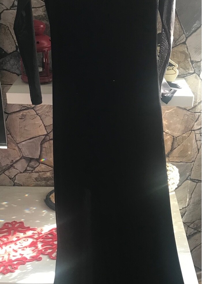Kolları ve sırtı bele kadar tül , yırtmaç detaylı kadife elbise Xs ve S bedenlere olur