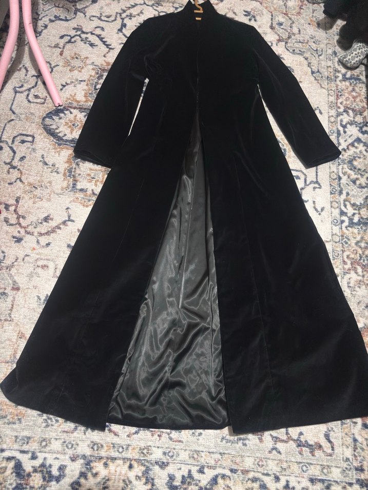 Özel dikim çok kaliteli kadife lacivert uzun ceket bele oturuyor alta doğru açılıyor