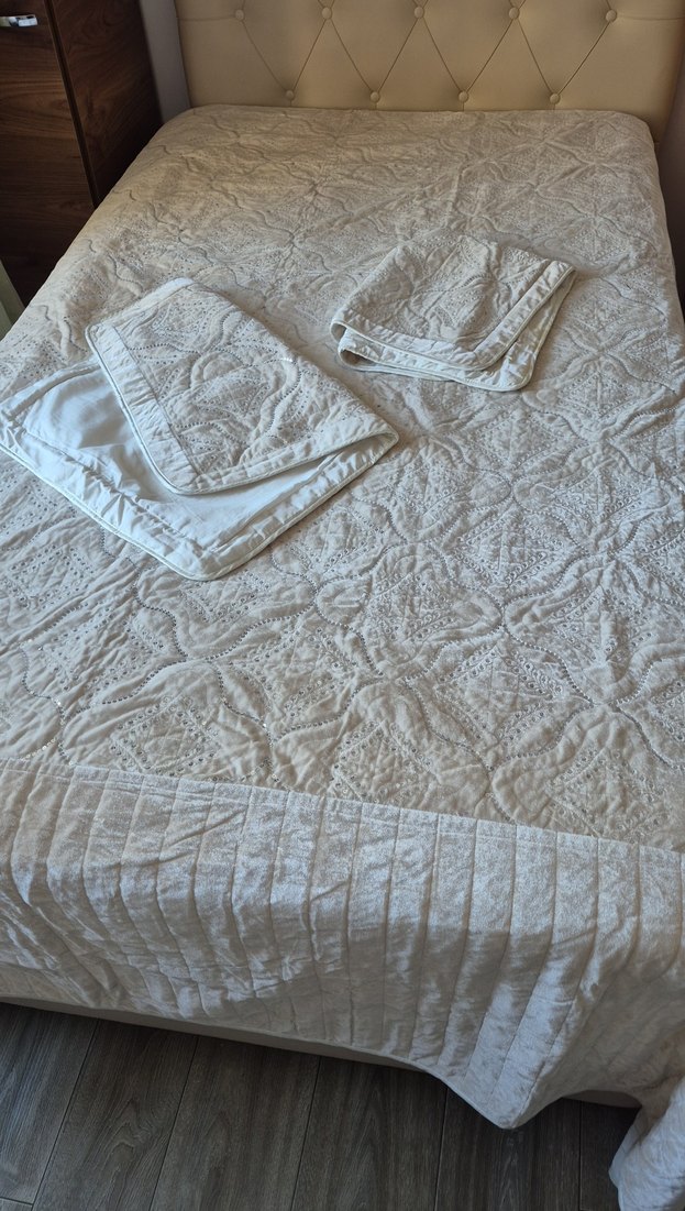 HİÇ KULLANILMADI Kadife çok şık çok zarif duruyor astarı pamuklu kumaştır.1.kalite çalışılmış 240 cm 240 cm dir 2 adet yastık kılıfı da var