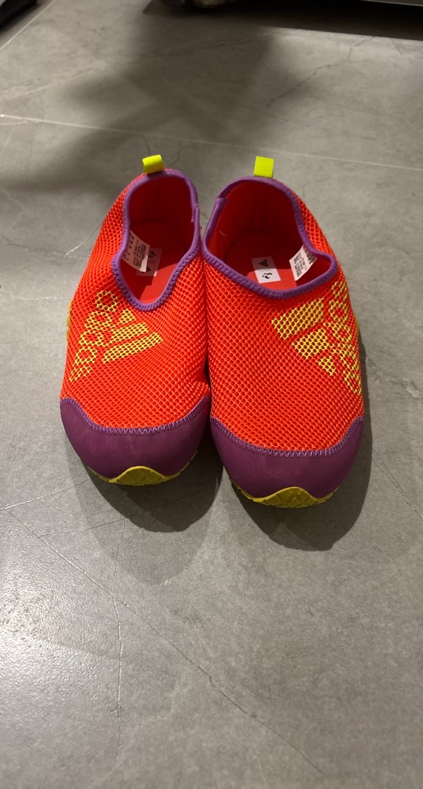 Kırmızı renkli, Velcro kapamalı kadın su ayakkabısı, renkli tie-dye desenli ve kauçuk tabanlıdır, spor ve sokak stili için uygundur. Üç kere kullanıldı ve defosu yoktur ve orijinaldir