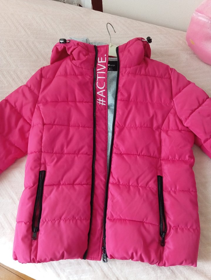 Kadın pembe, fermuarlı cepli ve yüksek yakalı, yumuşak ve sıcak kumaştan üretilmiş şık mont.