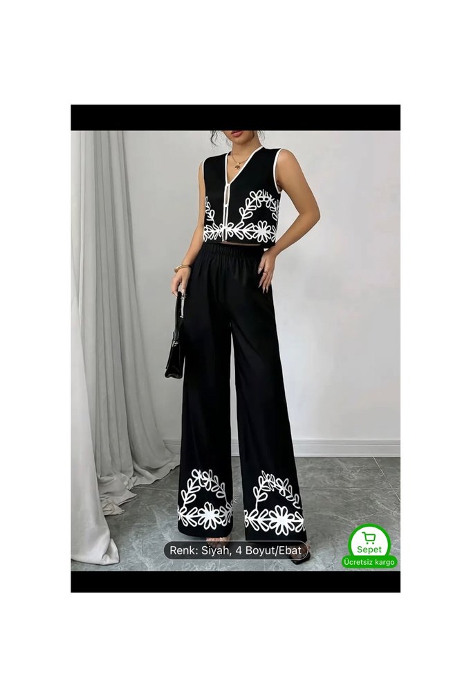 Kadın 2li Takım - Siyah, Dantel İşlemeli