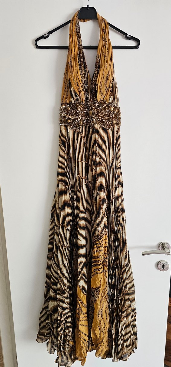 az kullanılmış 38 BEDEN kadın abiye. taşlı leopar desenli göğüs dekolteli.