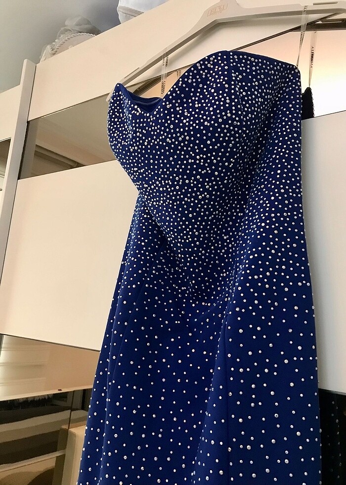 38 Beden Kadın Straplez, Boncuklu Abiye Astarlı 1 Kez Kullanıldı Düğün ve Balolarda Tercih Edilebilir