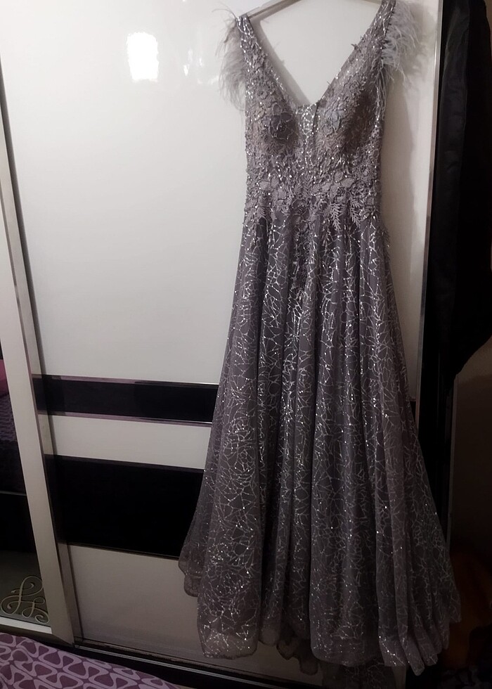 38 beden oğlumun sünnetinde giyildi bir kez temizdir arkası hafif kuyruklu önden boy 1.53(omuzdan etek ucuna kadar) iki gögüs arası 35 cm
