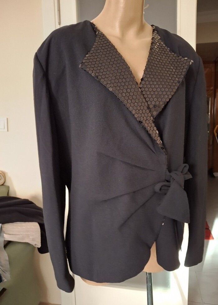 Sıfır Ürün etiketi kesik beden 18 olarak geçiyor tüm detaylar görselde mevcut 44-46 beden bu ceket uygun gardrobumda kadife etek ve taşlı şal ile tamamlayabilirsiniz