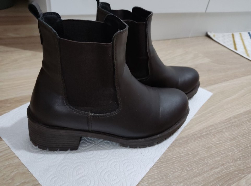 FLO’dan satın alınmıştır. Az giyilmiştir, temiz durumdadır. Suni deri (hakiki deri değildir). Rahat ve şık bir modeldir. 38 numaradır. defosu yoktur. Dar kalıptır, 37 giyenler tercih edebilir.