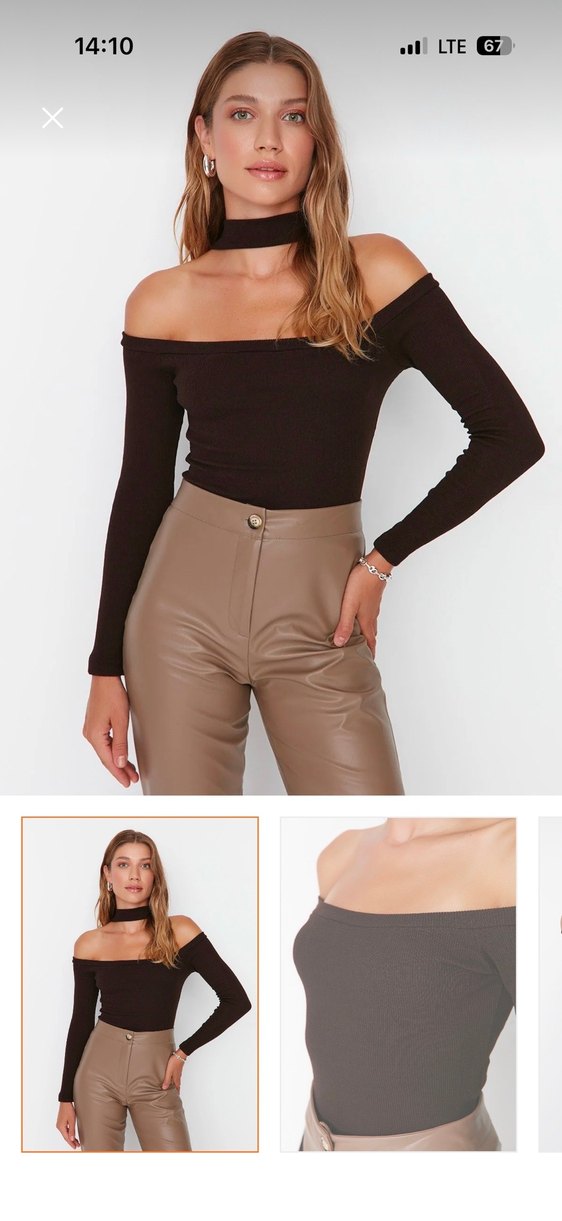 Hiç kullanılmadı. Omuz dekolteli, V yaka ve uzun kollu, kısa kesim dar kesim bluz. Yumuşak dokulu, rahat ve şık günlük sokak stili için uygundur.