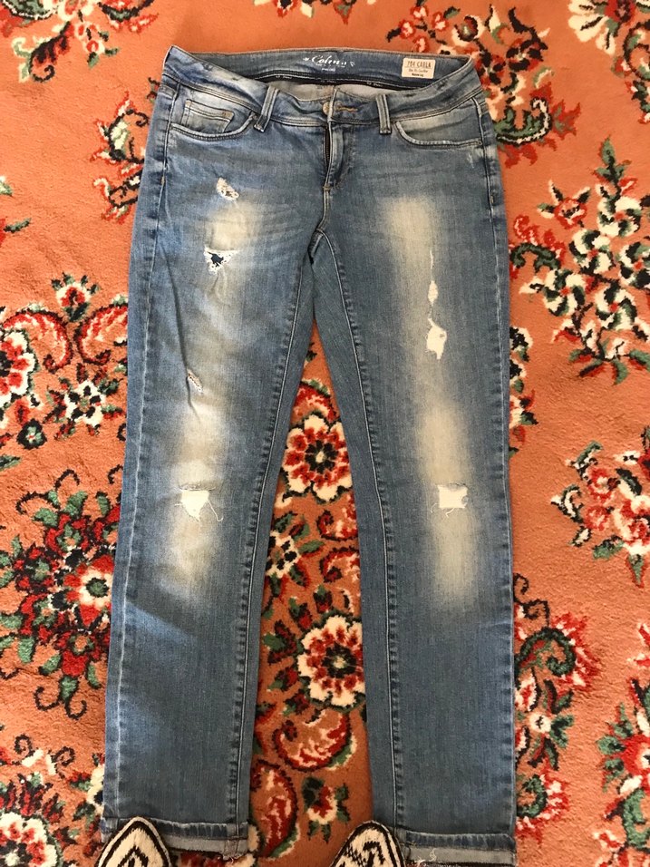 Kadın Açık Kahverengi Yırtık Denim Jean