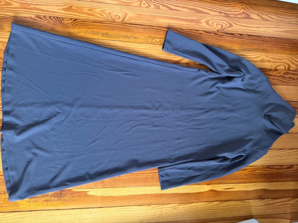 Kadınlar için uzun kollu, tek renk lacivert triko elbise. Minimalist ve sade tasarımıyla günlük kullanıma uygun, sentetik dokulu kumaştan üretilmiştir.