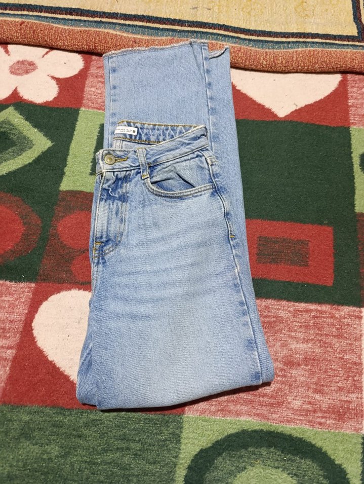 Kadınlar için açık mavi renkte, regular fit kesim ve bağcıklı detaylı denim jean. Midi boy, hafif batik desenli, günlük sokak tarzına uygun.
