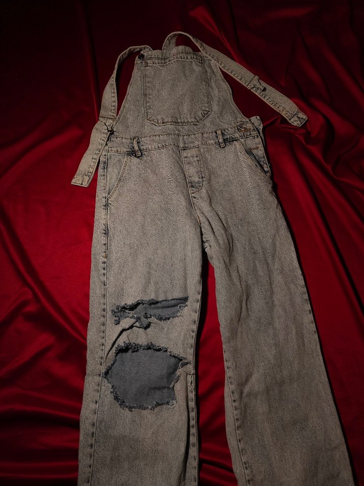 Sadece bir kez giyildi. Mükemmel durumda. Salaş kesim gri kot tulum, askılı ve tokalı detaylara sahip. Yırtık desenlerle grunge tarzını yansıtan, günlük kullanım için uygun bir parça.
