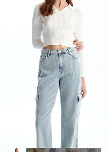 Kadın Açık Mavi Loose Fit Midi Denim Jean