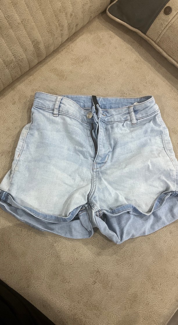 defosuz Açık mavi pastel tonlarda, dar kesim mini denim şort. Desensiz, günlük kullanıma uygun, rahat ve şık bir sokak stili sunar.