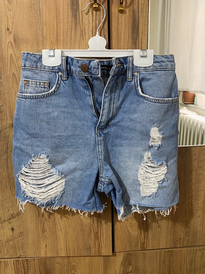 Açık mavi renkli, bol kesim.Yırtık detaylarıyla günlük ve rahat sokak stili için uygundur. Defosuz