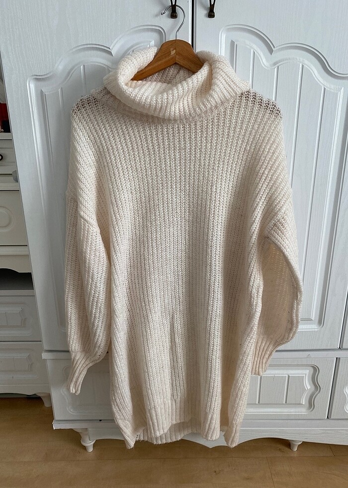 Kadın açık renk çok tatlı boğazlı kazak tunik gibi ????