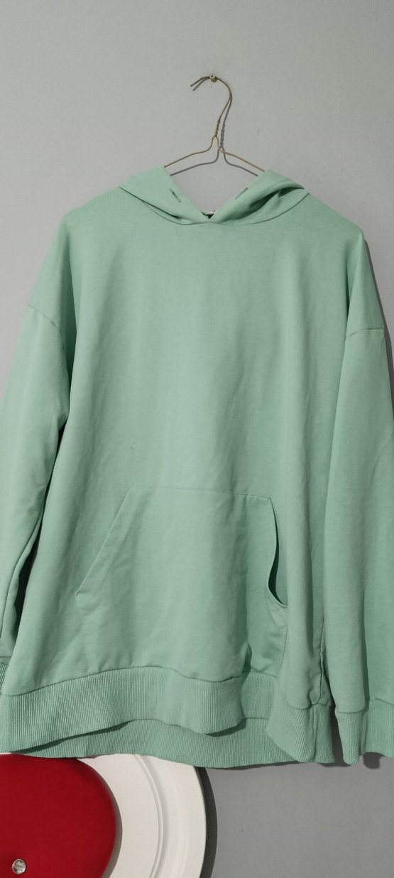 Kadınlar için yuvarlak yaka, uzun kollu ve bol kesim. Yumuşak ve sıcak kumaştan, pastel yeşil renkte sade tasarım, günlük kullanım için ideal.