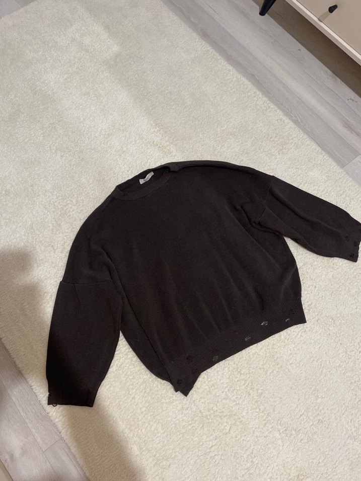 Siyah renkte, keten kumaştan yapılmış, salaş kesim uzun kollu ve yuvarlak yakalı kadın kazak. Minimalist tasarımı günlük rahat kullanıma uygundur. hiç kullanılmadı etiketi yok s m bedenlere rahatlıkla olur alt üst takımdır